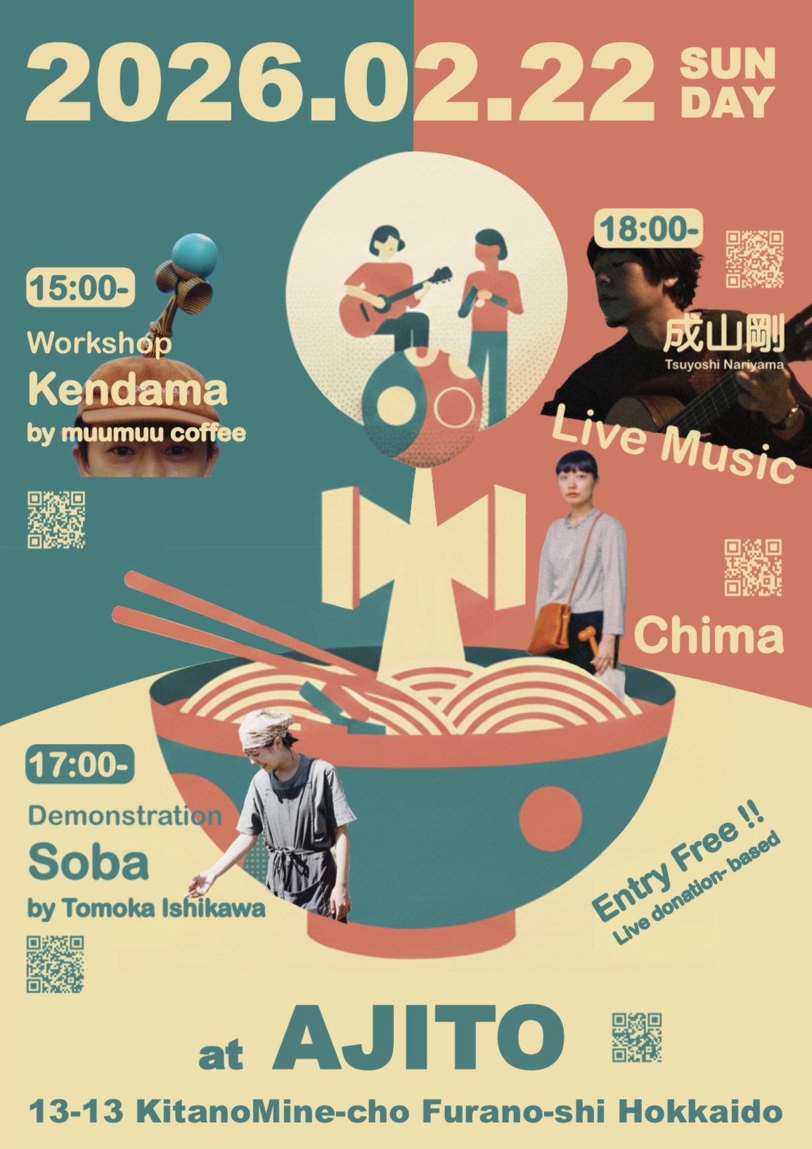 ※件名に”1/31 or 2/1 予約”、本文に “ご予約名・人数・連絡先”をご記入の上お送りください。